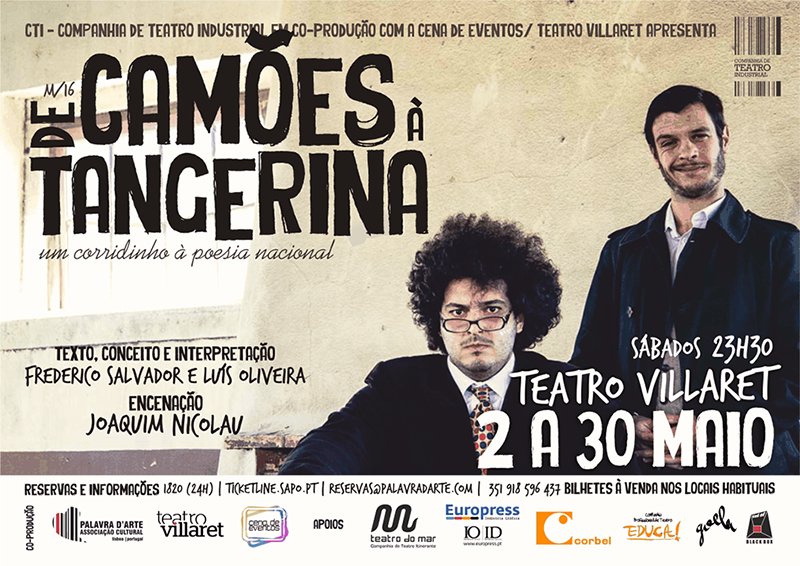 O Teatro Villaret apresentou ao público, entre os dias 2 e 30 de Maio, a peça ”De Camões à Tangerina”, da Companhia de Teatro Industrial, encenada por Joaquim Nicolau e protagonizada pelos atores Frederico Salvador e Luís Oliveira, espetáculo que teve o patrocínio da Europress–Indústria Gráfica.